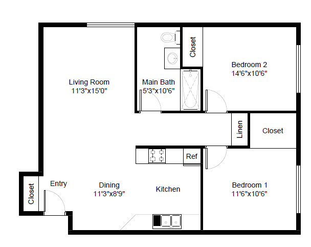 Taft - Plano 1 Unidad de apartamento: N322Modelo de apartamento: Taft$1,5242 Dormitorios, 1 Baño, 800 sq ftDisponible AhoraRoosevelt