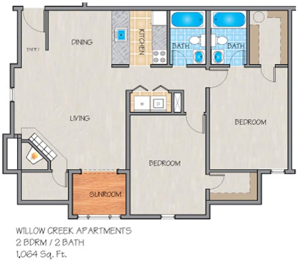 Willow Creek ofrece apartamentos de 1 a 2 Dormitorios desde $1,010 con 680–1,064 pies cuadrados. Aquí está el precio actual y la disponibilidad: