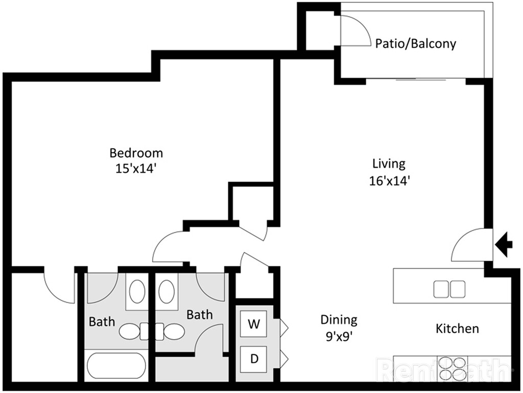 Modelo de apartamento: 1 Bedroom, 1.5 BathroomDesde $9951 Dormitorio, 1 Baño, 1036 sq ftNo Disponible![]()