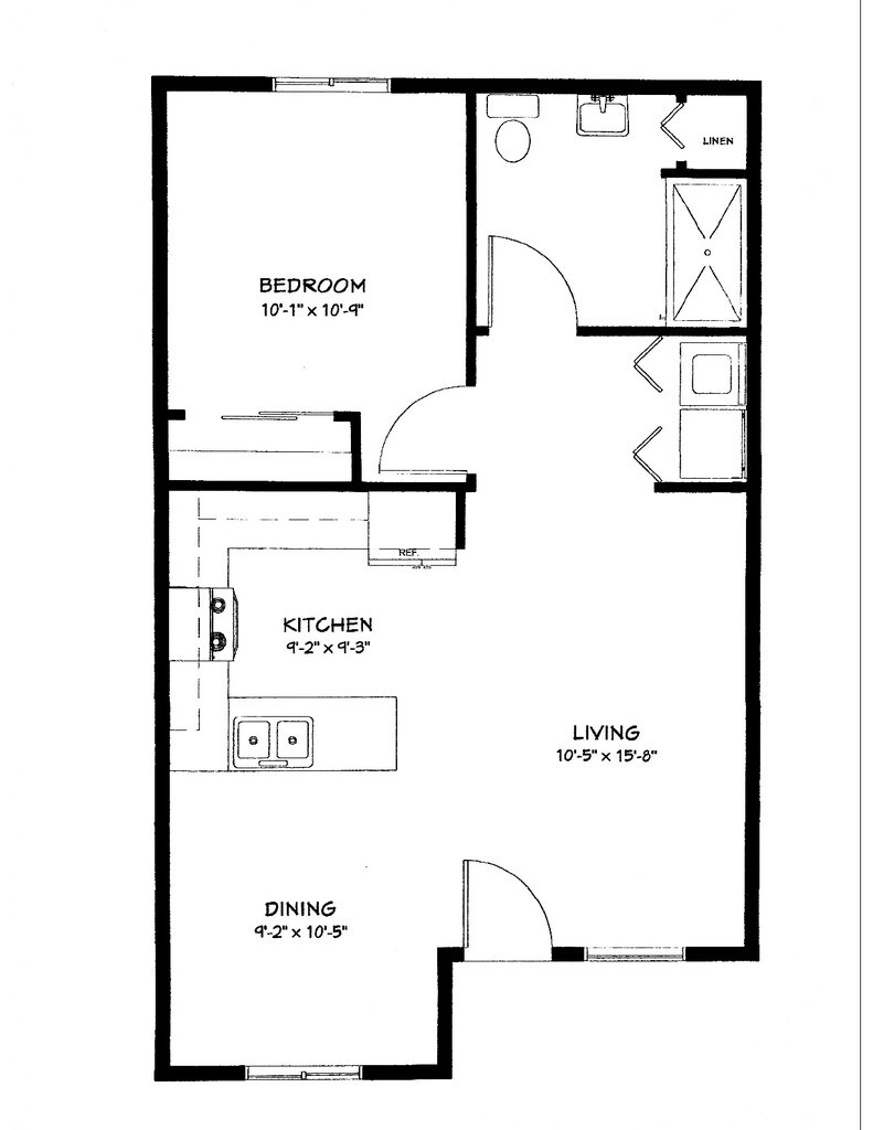 1 Dormitorio, 1 Baño, 640 pies²Galería del Modelo