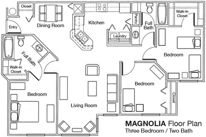 Modelo de apartamento: 3x23 Dormitorios, 2 Baños, 1184 sq ftNo Disponible![]()