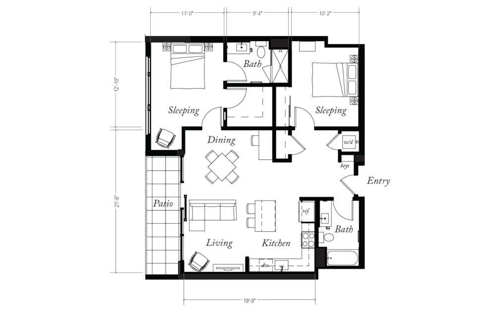 Modelo de apartamento: 1X1 Penthouse B$2,8161 Dormitorio, 1 Baño, 792 sq ftDisponible AhoraLos planos son representaciones artísticas. Todas las dimensiones son aproximadas. El producto y las especificaciones reales pueden variar en tamaño o detalle. No todas las características están disponibles en cada vivienda en alquiler. Por favor, consulta con un representante para obtener más detalles.