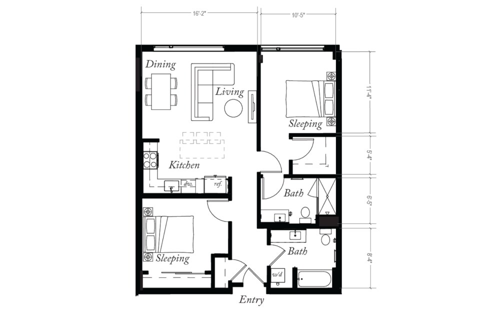 Urban 1x1 - Plano 1 Unidad de apartamento: 163Modelo de apartamento: Urban 1x1$2,0801 Dormitorio, 1 Baño, 575 sq ftDisponible April 7, 20261x2.5 Townhome