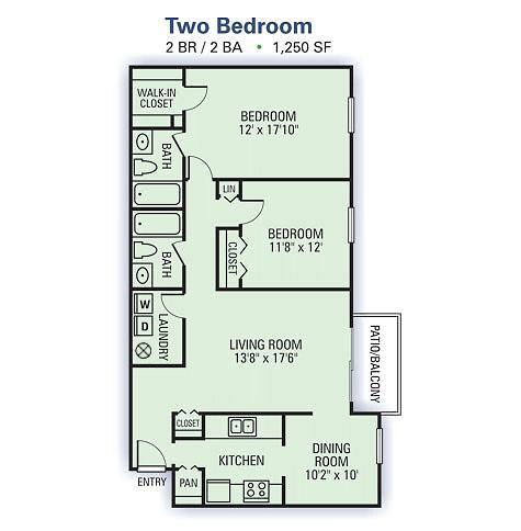 2 Dormitorios, 2 Baños, 1250 pies²Disponible AhoraGalería del Modelo