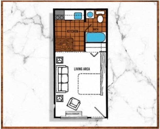 1 Bed, 1 Bath, 288 sq ftModel Gallery