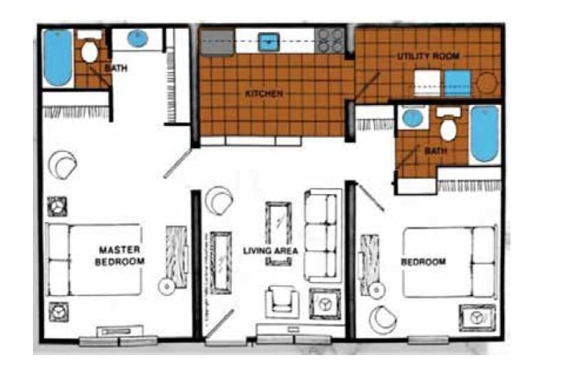 2 Bed 1 Bath - Silver - Floorplan 3 2 Bed 2 Bath - Silver