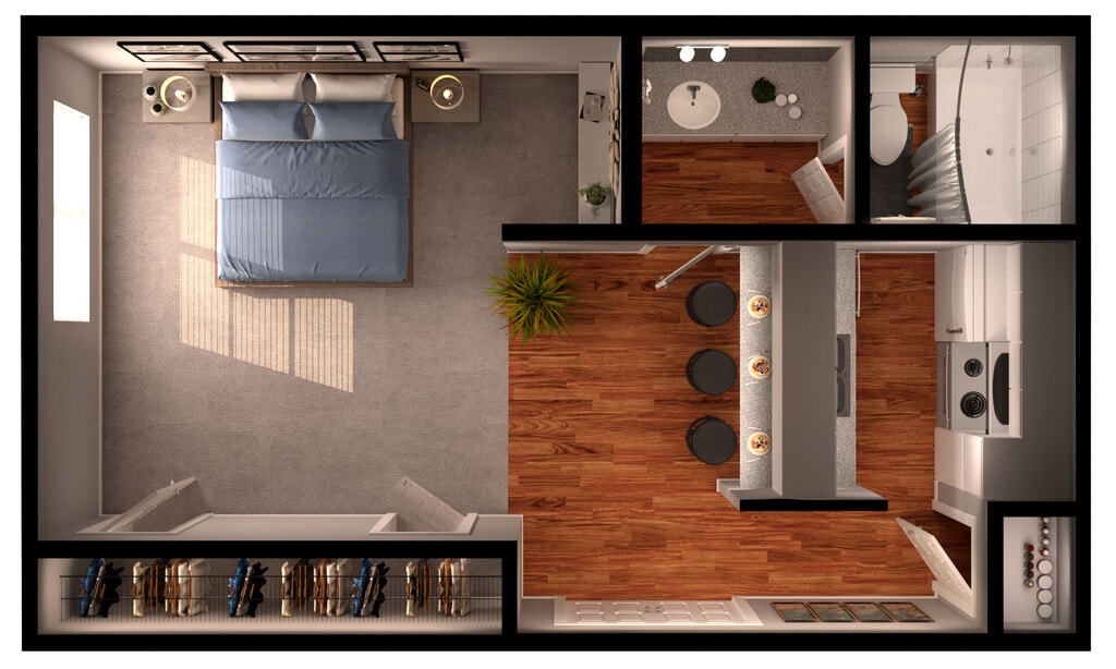 Estudio, 1 Baño, 435 pies²Disponible Nov 10Galería del Modelo
