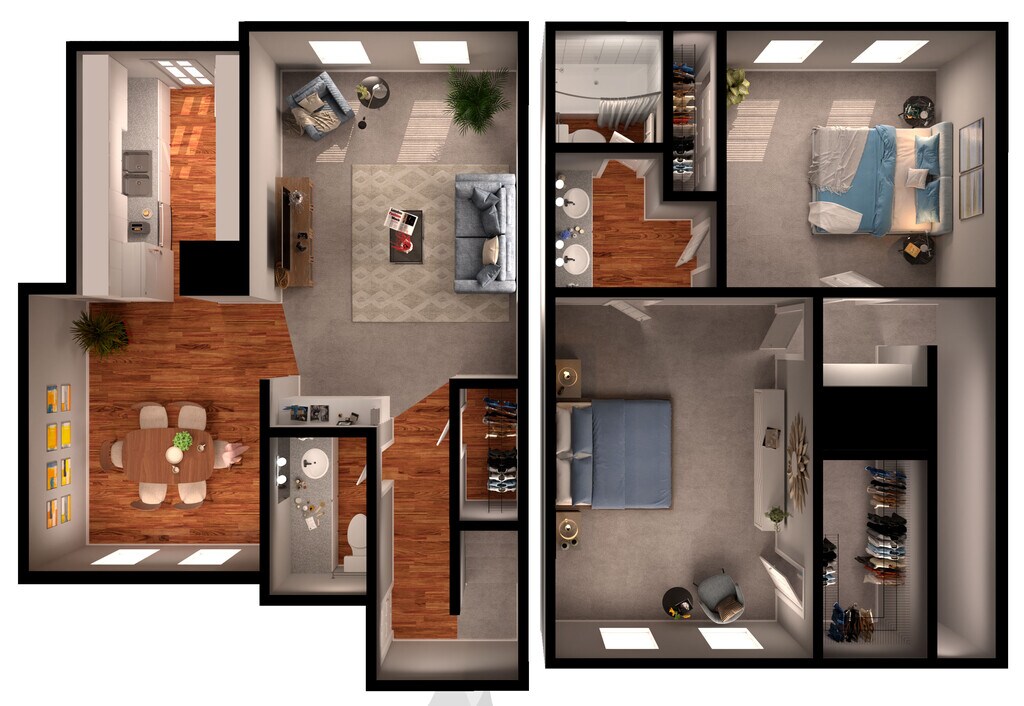 - Planos de planta eficientes de 1, 2 y 3 habitaciones