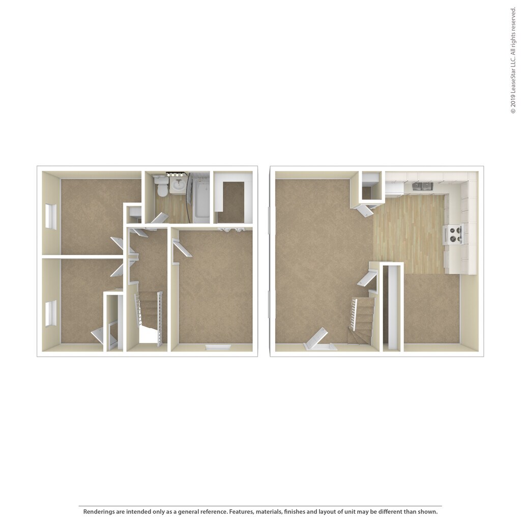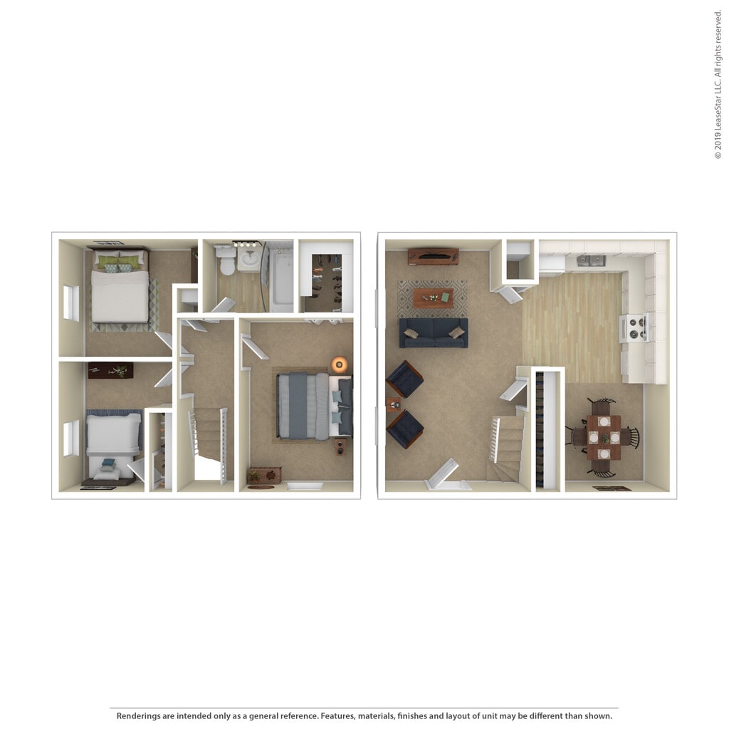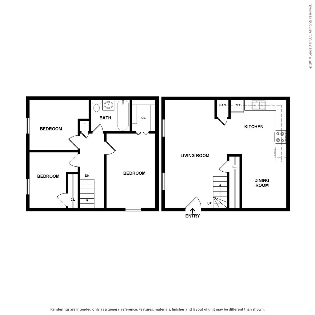 3 Dormitorios, 1 Baño, 968 pies²Galería del Modelo