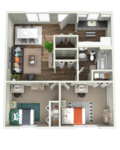 2 Dormitorios, 1 Baño, 730 pies²Disponible AhoraGalería del Modelo