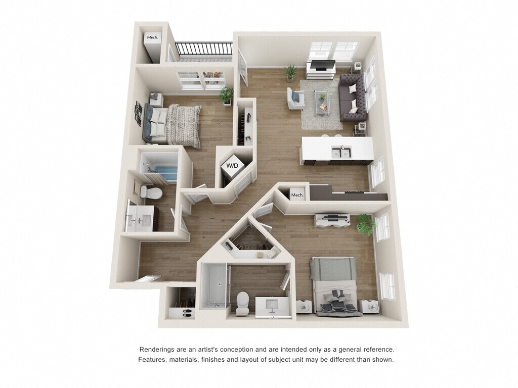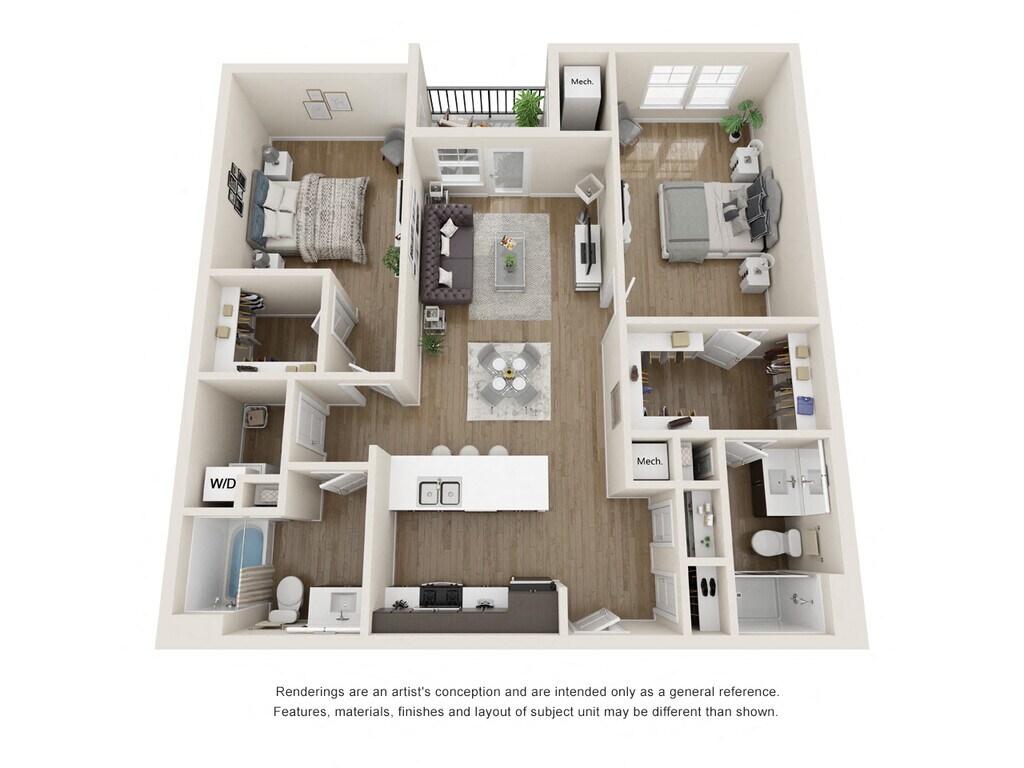 2 Dormitorios, 2 Baños, 1171 pies²Disponible Mar 14Galería del Modelo