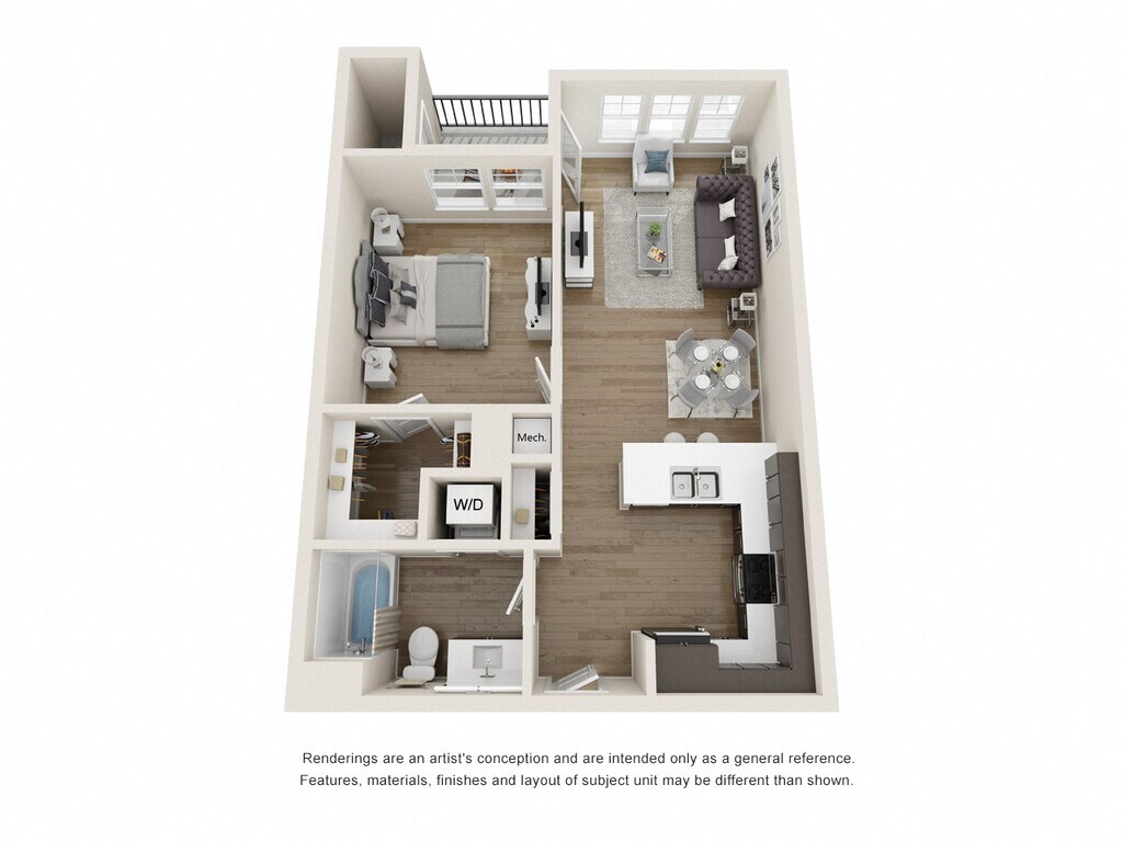 1 Dormitorio, 1 Baño, 1091 pies²Disponible AhoraGalería del Modelo