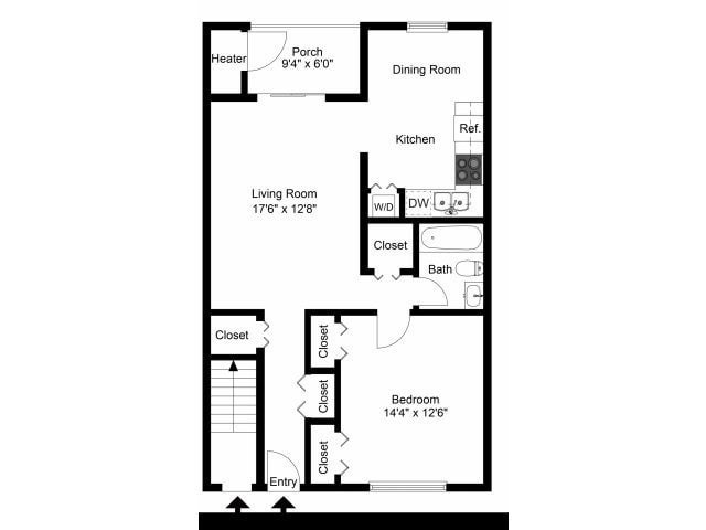 Modelo de apartamento: Two Bedroom 1st Floor2 Dormitorios, 1 Baño, 1004 sq ftDisponible November 7, 2025![]()