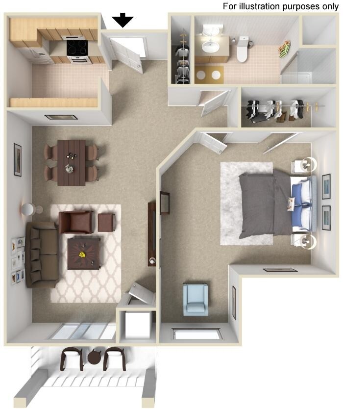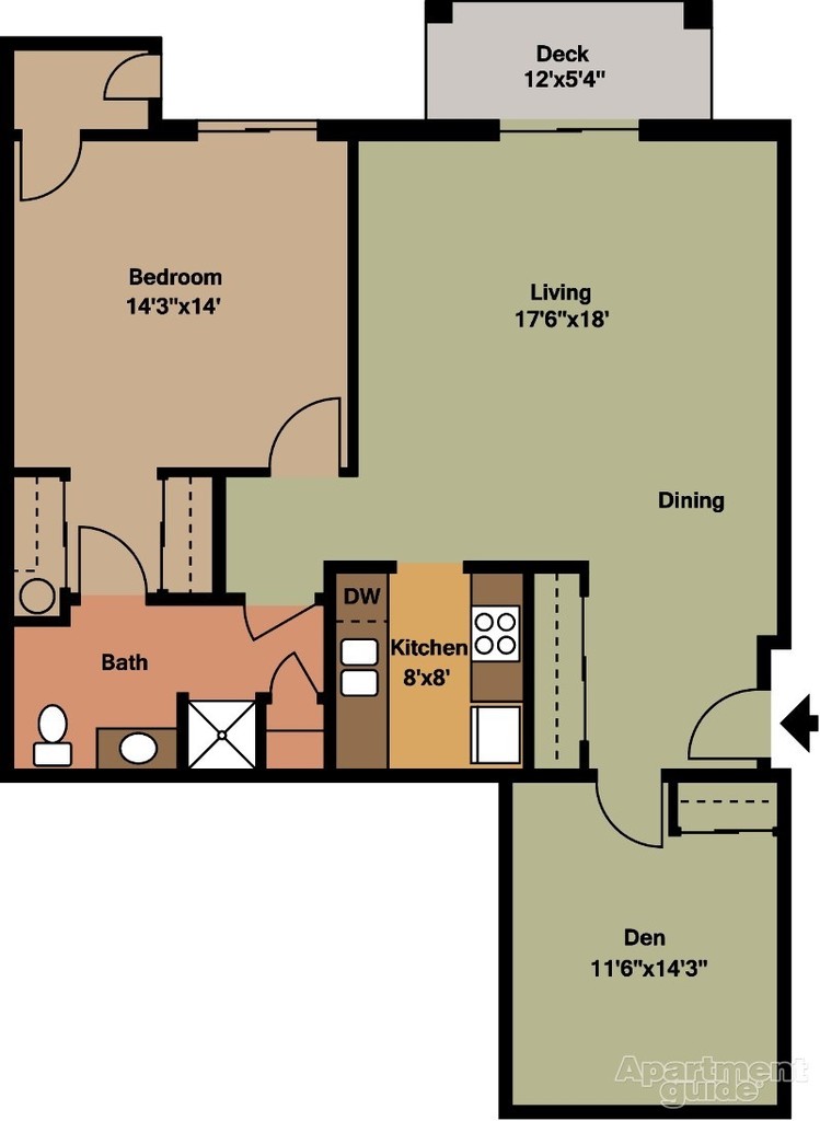 Modelo de apartamento: ELlame para Precios1 Dormitorio, 1 Baño, 710 sq ftNo Disponible![]()