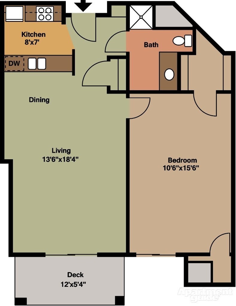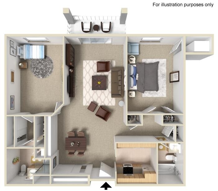 Modelo de apartamento: B2Llame para Precios1 Dormitorio, 1 Baño, 760 sq ftNo Disponible![]()