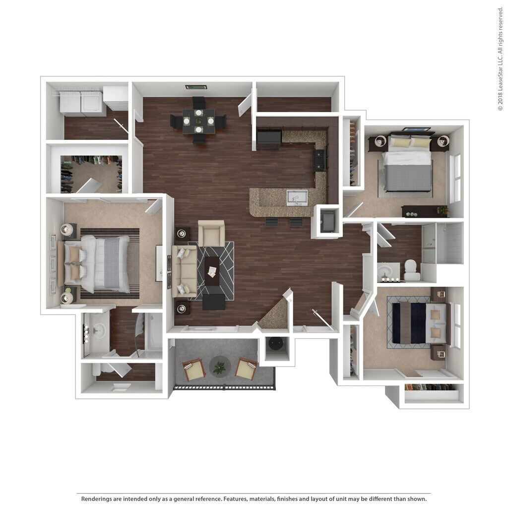 Modelo de apartamento: JuniperDesde $1,7982 Dormitorios, 2 Baños, 1191 sq ftDisponible Ahora![]()