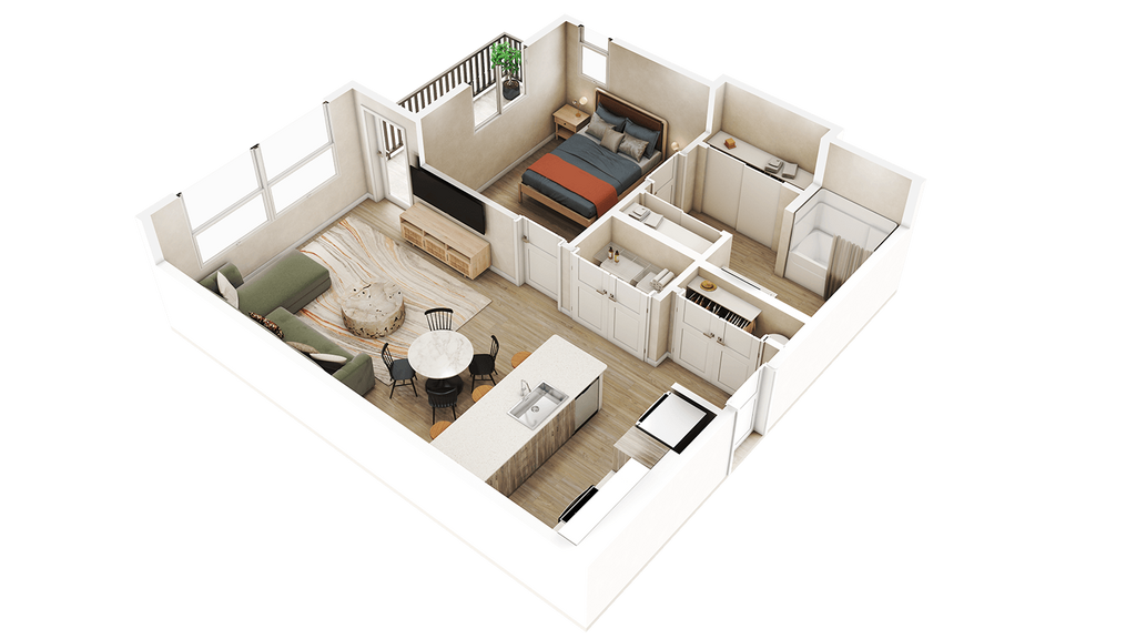 1 Dormitorio, 1 Baño, 769 pies²Disponible AhoraGalería del Modelo