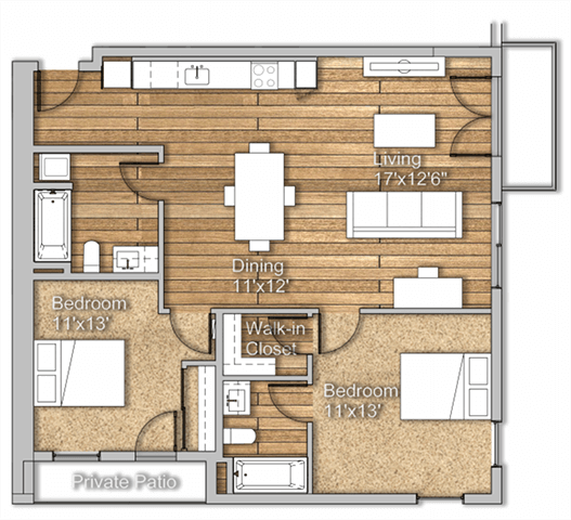 2x2J - Plano 1 Unidad de apartamento: 326Modelo de apartamento: 2x2JLlame para Precios2 Dormitorios, 2 Baños, 1119 sq ftDisponible Ahora2x2C