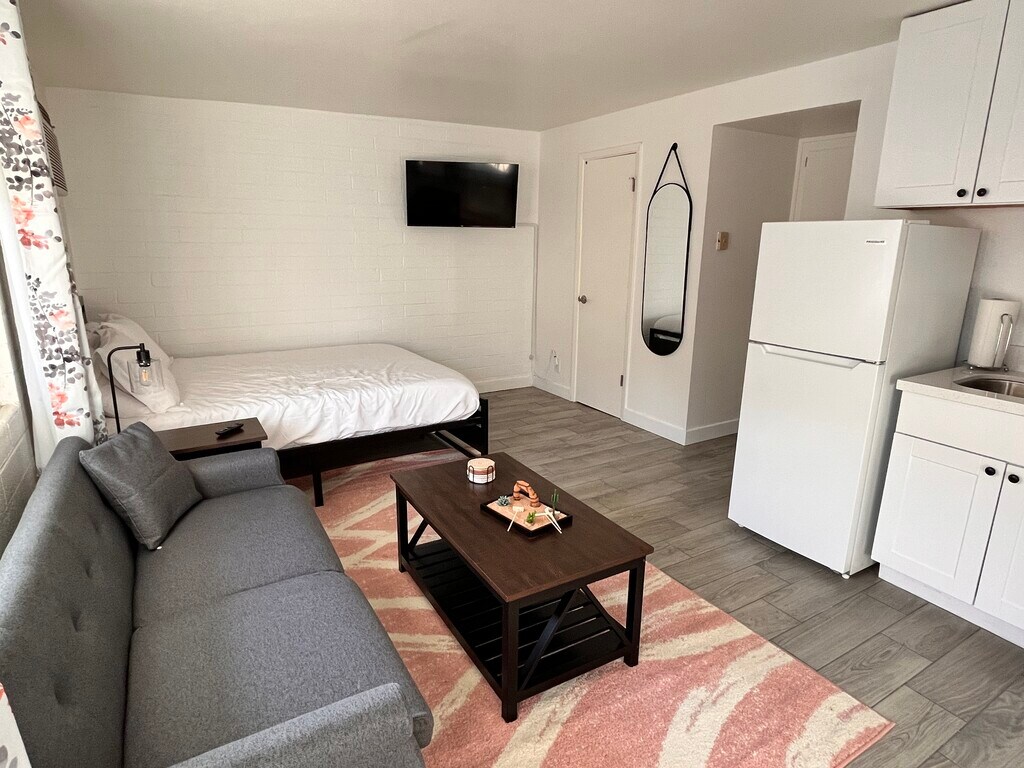 Cómodas habitaciones tipo estudio en el corazón de Tempe. A una poca distancia a pie del Mill Ave. Lugares de entretenimiento, tren ligero, tiendas, y restaurantes.