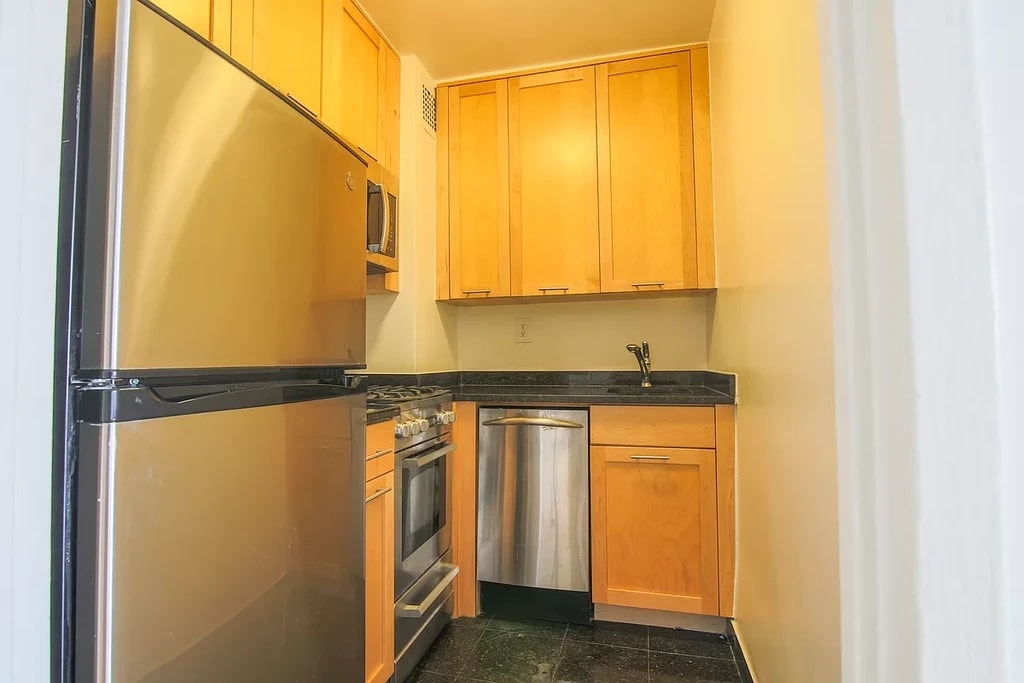 August 27, 2015My wife and I were looking for a pet-friendly 1BR within walking distance to Grand Central (and within our budget). This building fit all those criteria, as well as some of our secondary requirements. Building has 24-hour doorman and a live-in super. Staff were all very nice and helpful if issues arose (we had no maintenance issues in our unit in 2 years). Building has a small gym, which is free for residents. Building also has a laundry room and elevator. Building is located at 36th and 2nd, ...which lends to some traffic noise due to tunnel entrance, but it wasn't overpowering. Flip side of that is you're walking distance to many bars, restaurants, grocery stores, drug stores, subways, etc. There's a big park right across 2nd (basketball courts, large blacktop area, squash courts, large playground) as well. Our unit had two in-wall A/C units (bedroom and main room). Unit had been updated with granite countertops and stainless steel appliances in kitchen, marble tile in bathroom. Quality of work was a little shoddy, but everything looked/worked just fine. Overall, building is in a convenient location with decent amenities. It's nothing fantastic, but you could do a lot worse on the east side.Leer MásReseña de Apartments.com