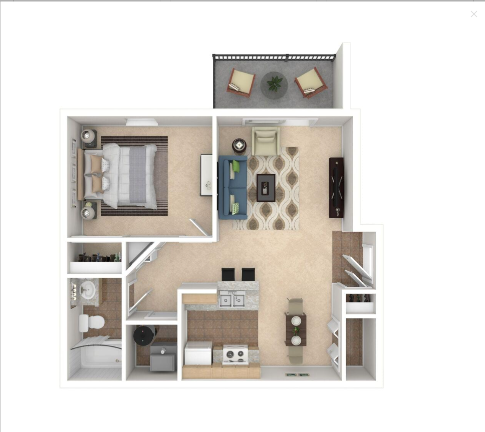 1 Dormitorio, 1 Baño, 678 pies²Disponible AhoraGalería del Modelo