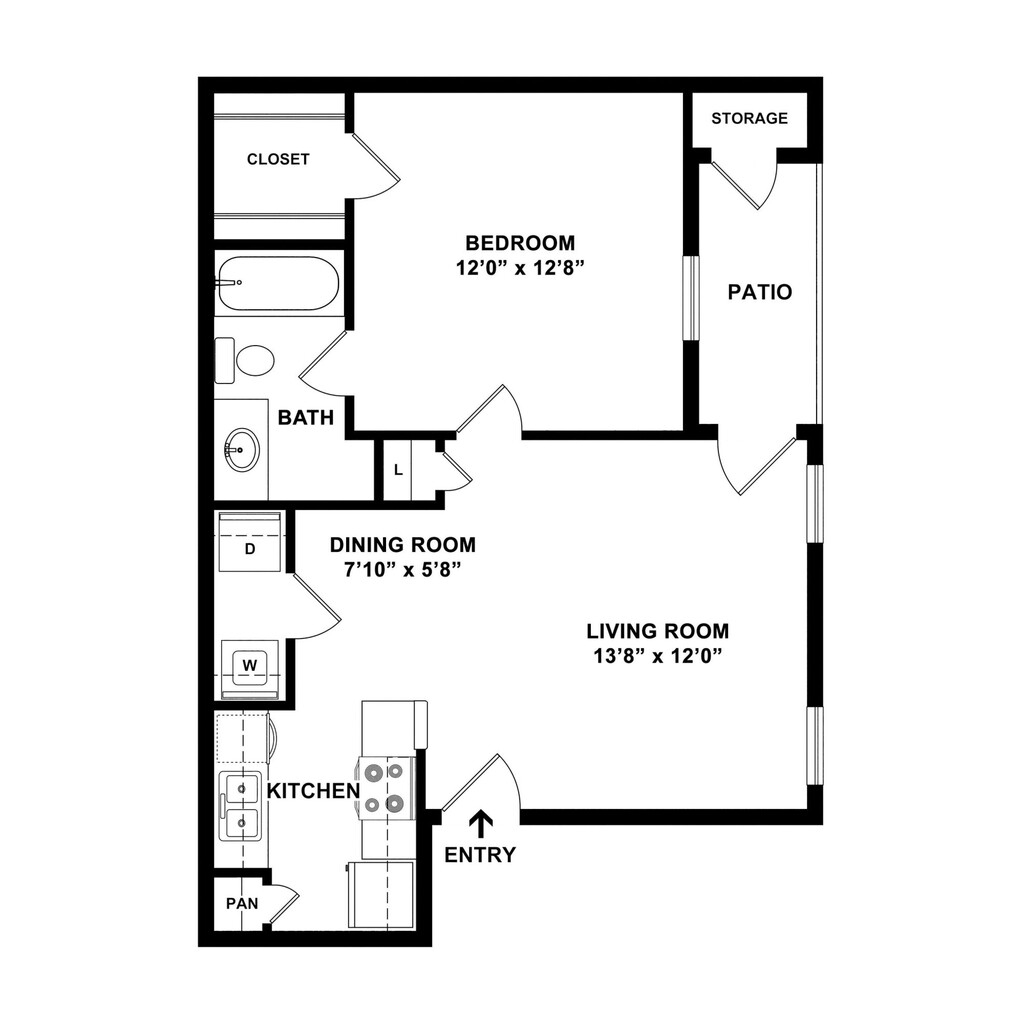 Modelo de apartamento: A1Desde $1,0681 Dormitorio, 1 Baño, 674 sq ftDisponible Ahora![]()