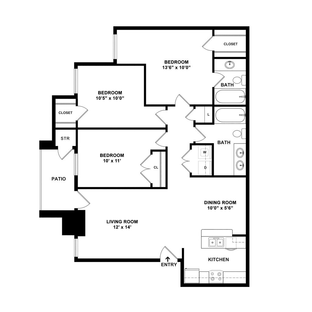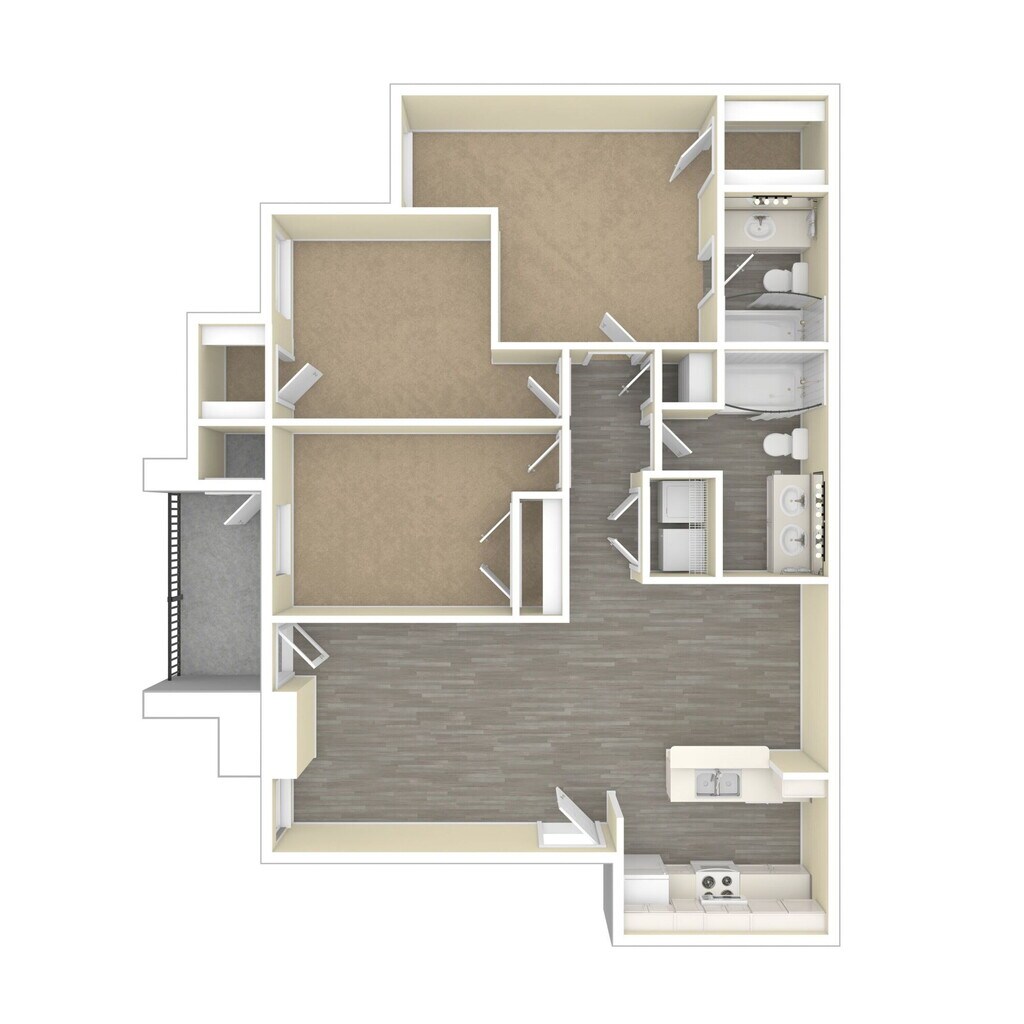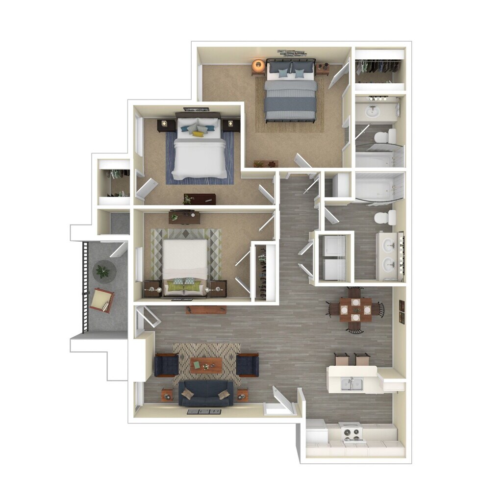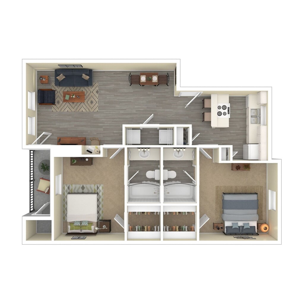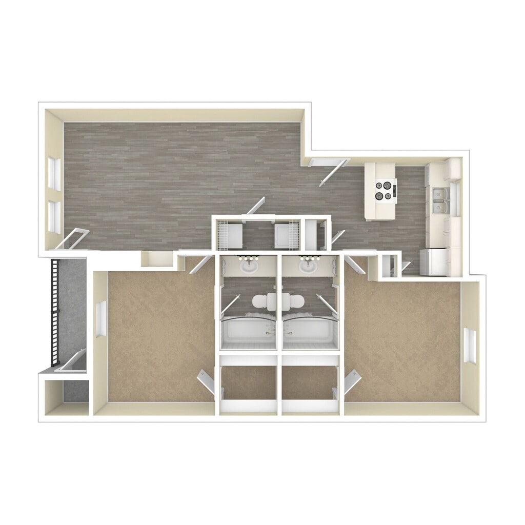 Modelo de apartamento: B1Desde $1,5482 Dormitorios, 2 Baños, 990 sq ftDisponible Ahora![]()