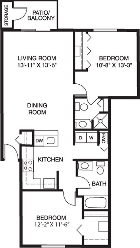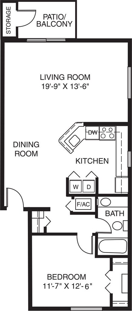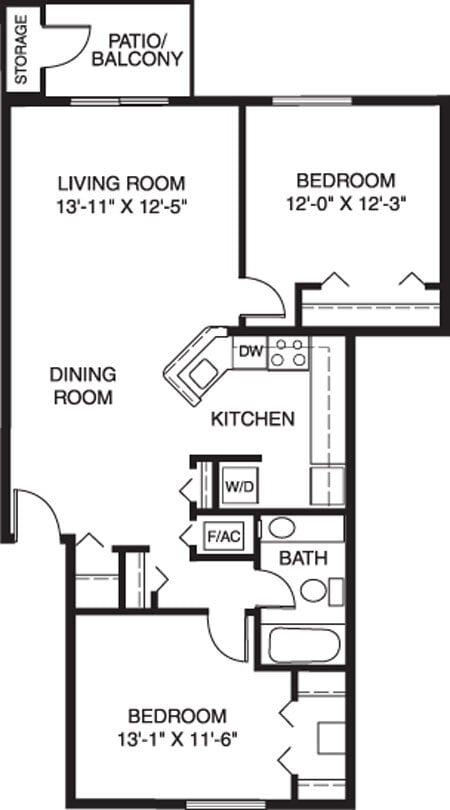 Modelo de apartamento: One BedroomDesde $1,3281 Dormitorio, 1 Baño, 686-712 sq ftDisponible AhoraPlanosFotos![]()