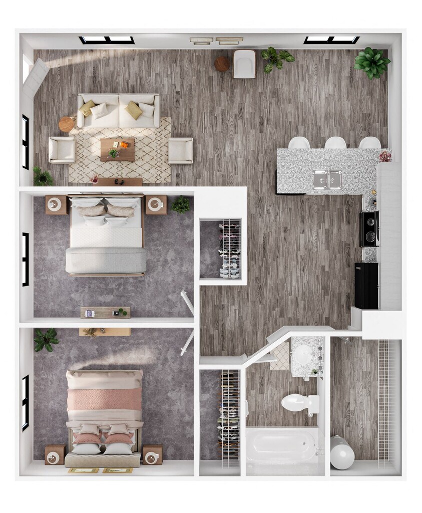 2 Dormitorios, 1 Baño, 816 pies²Disponible AhoraGalería del Modelo