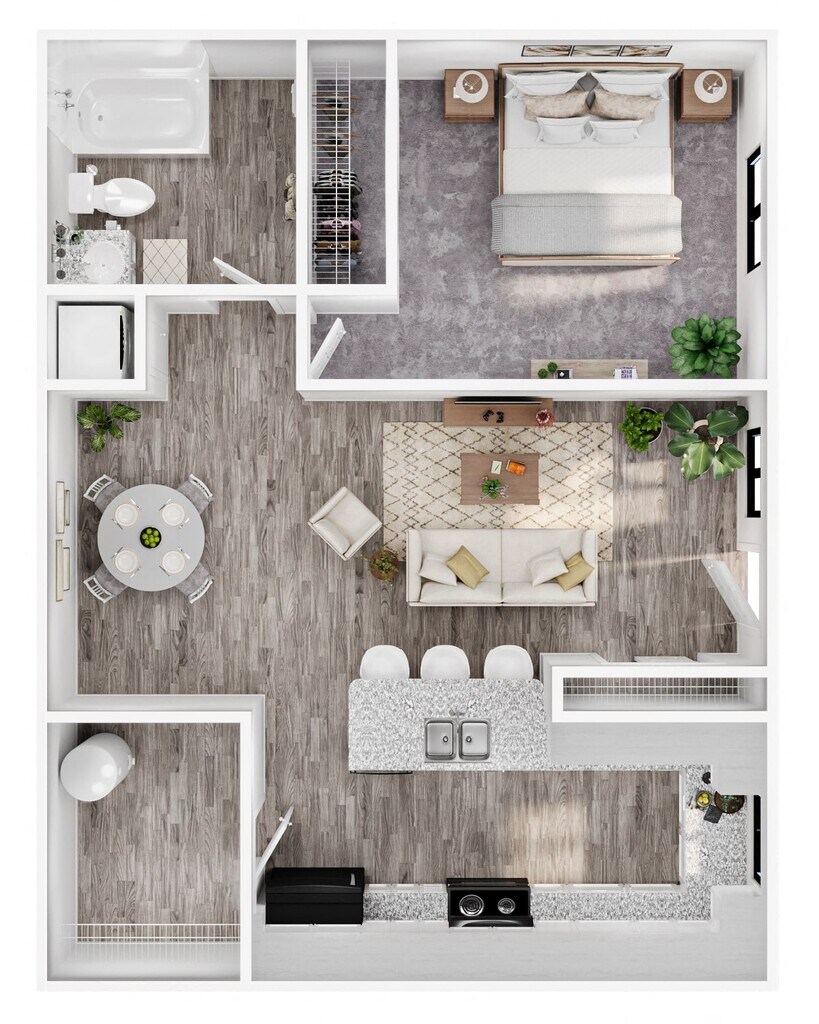 1 Dormitorio, 1 Baño, 616 pies²Galería del Modelo