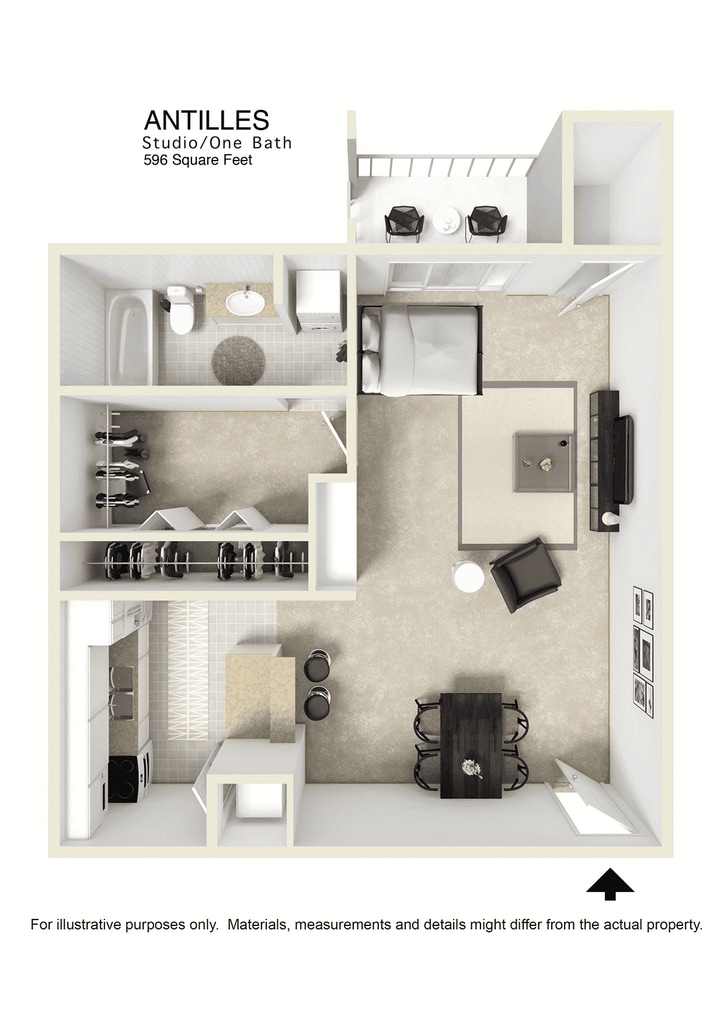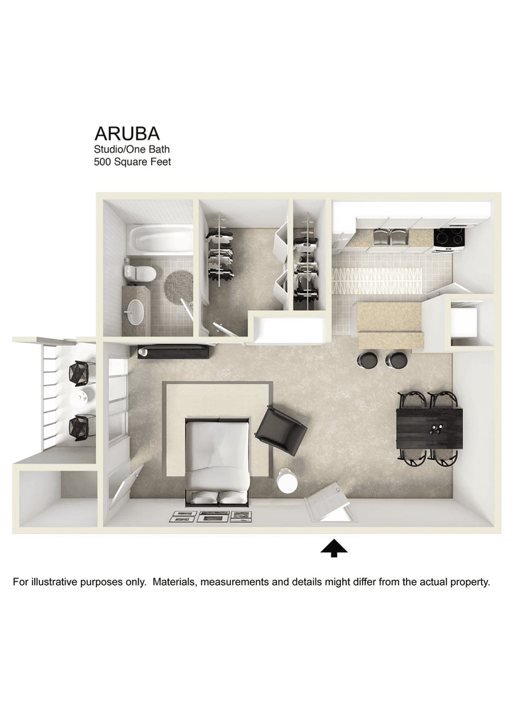 Modelo de apartamento: Aruba$875Estudio, 1 Baño, 500 sq ftDisponible AhoraAruba - Plano 1 Antilles