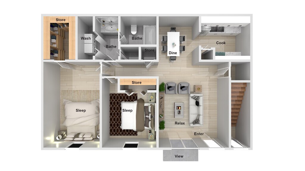 Modelo de apartamento: 2 BD 1 BA UPGRADEDDesde $9492 Dormitorios, 1 Baño, 1040 sq ftDisponible AhoraPlanosFotos![]()