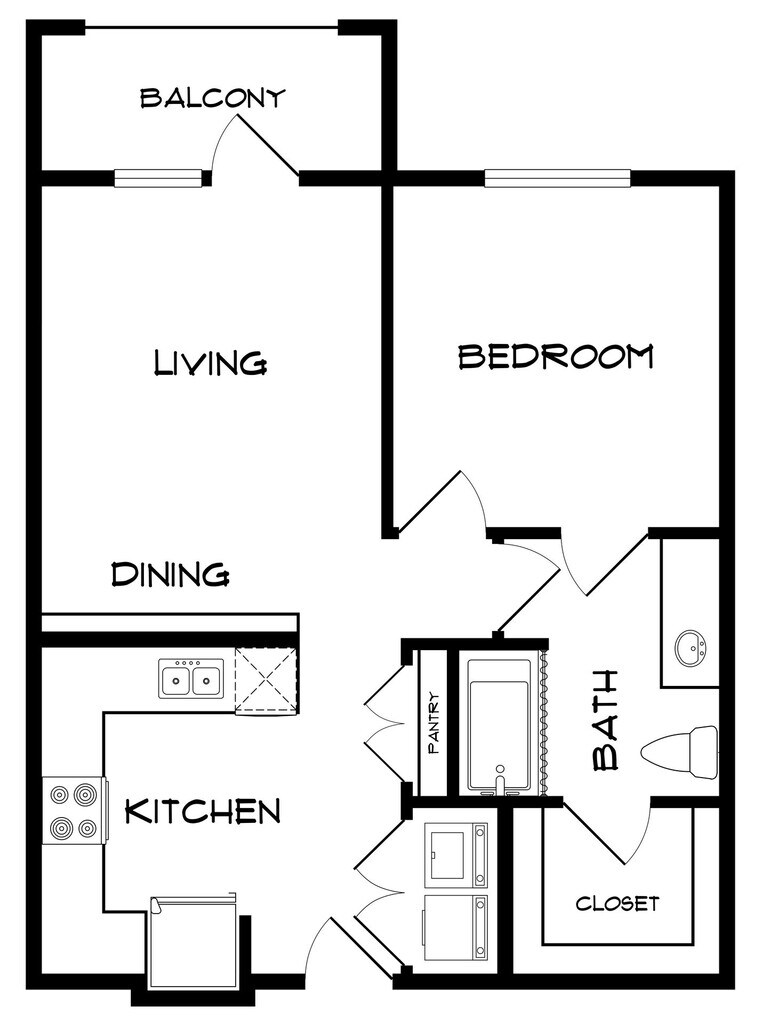 1 Dormitorio, 1 Baño, 740 pies²Disponible AhoraGalería del Modelo