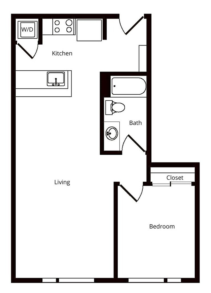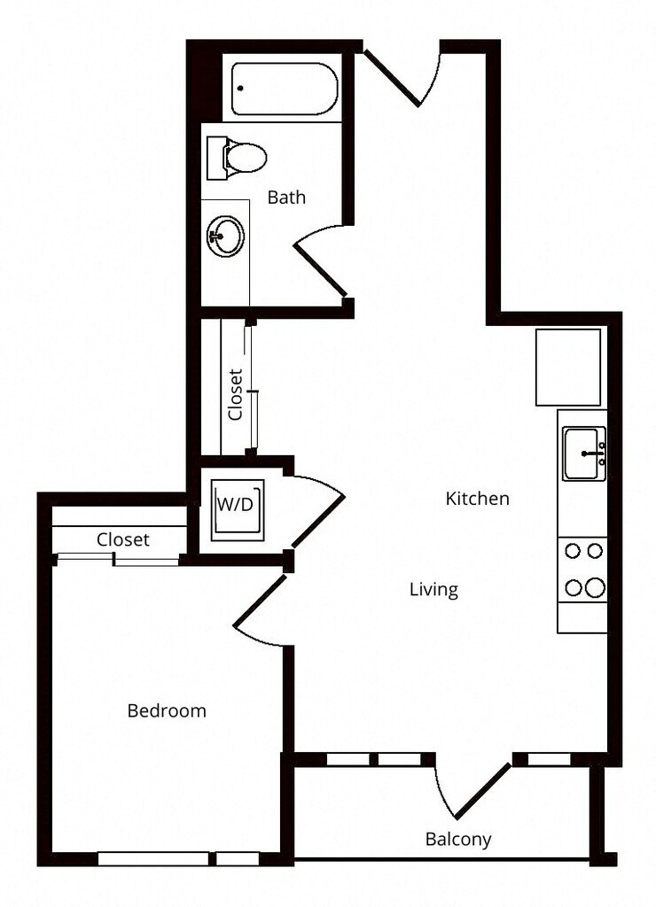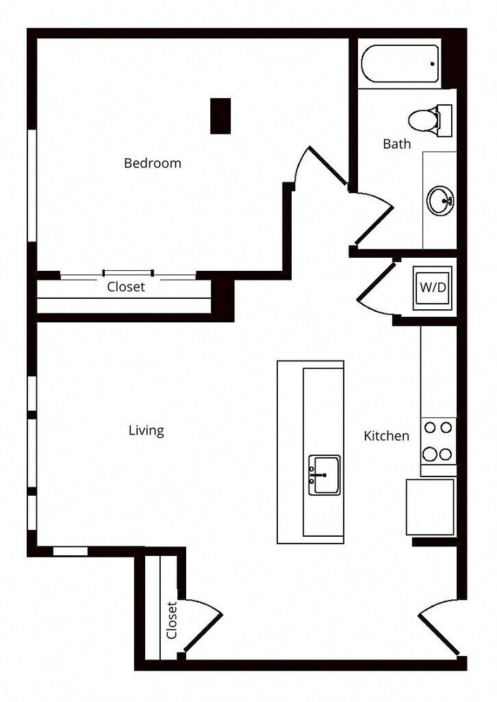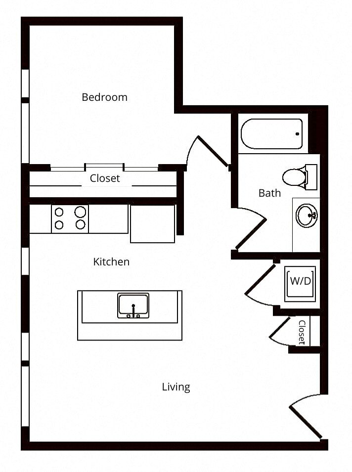 Estudio, 1 Baño, 536 pies²El más grandeEsta opción tiene las unidades más grandes para este modeloGalería del Modelo