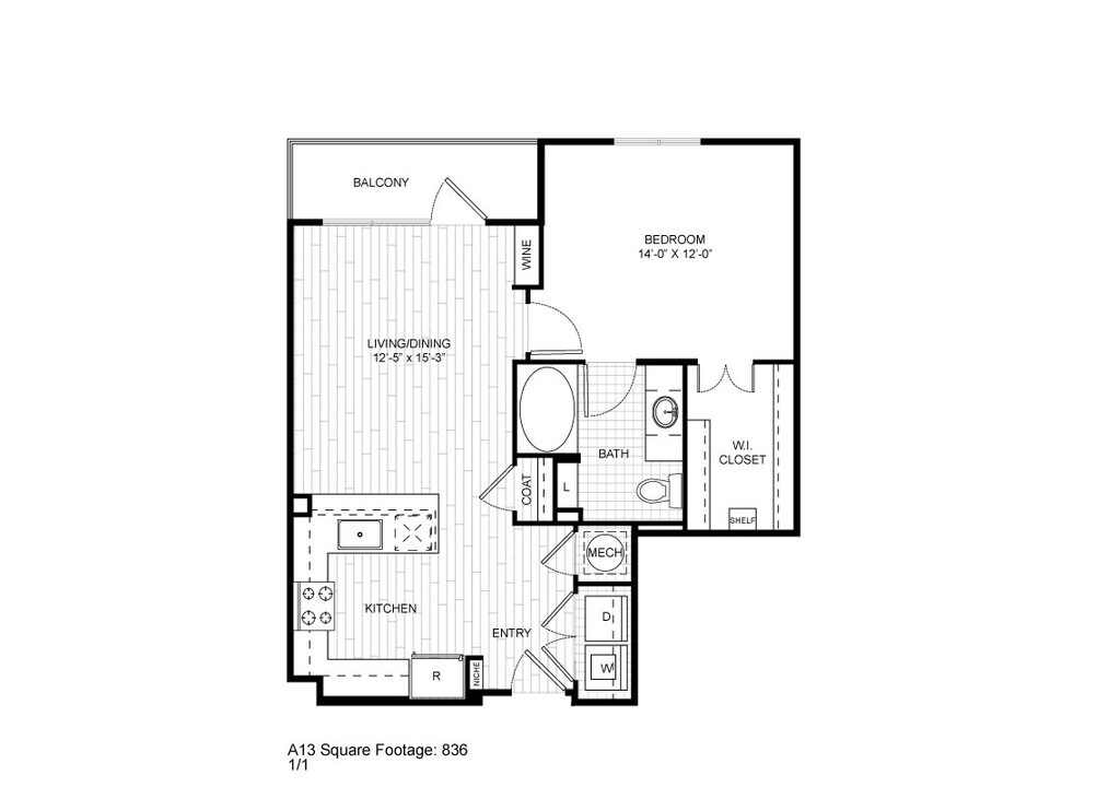 1 Dormitorio, 1 Baño, 764 pies²Disponible AhoraGalería del Modelo