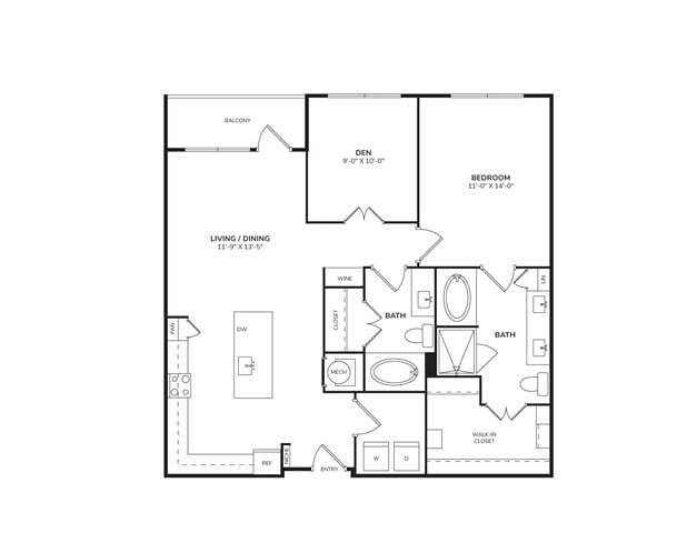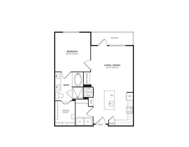 Modelo de apartamento: A41Desde $1,4641 Dormitorio, 1 Baño, 706 sq ftDisponible Ahora![]()