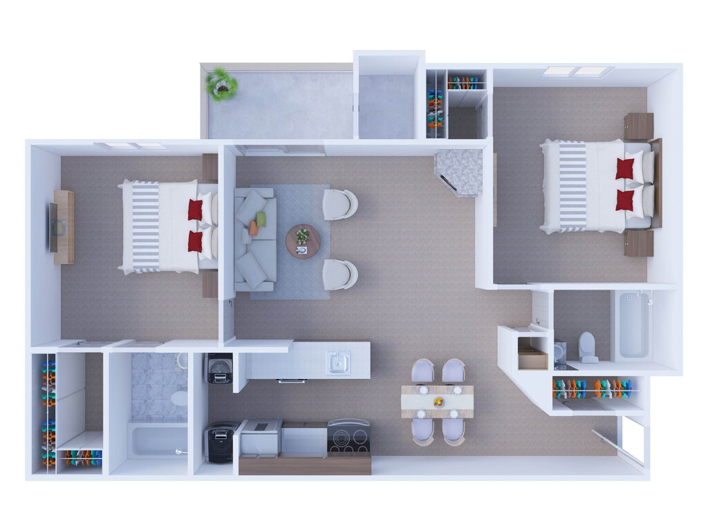 2 Dormitorios, 2 Baños, 1052 pies²Disponible AhoraEl más grandeEsta opción tiene las unidades más grandes para este modeloGalería del Modelo