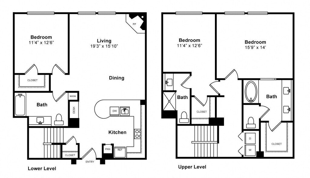 Modelo de apartamento: One Bedroom with Loft1 Dormitorio, 1 Baño, 897 sq ftNo Disponible![]()