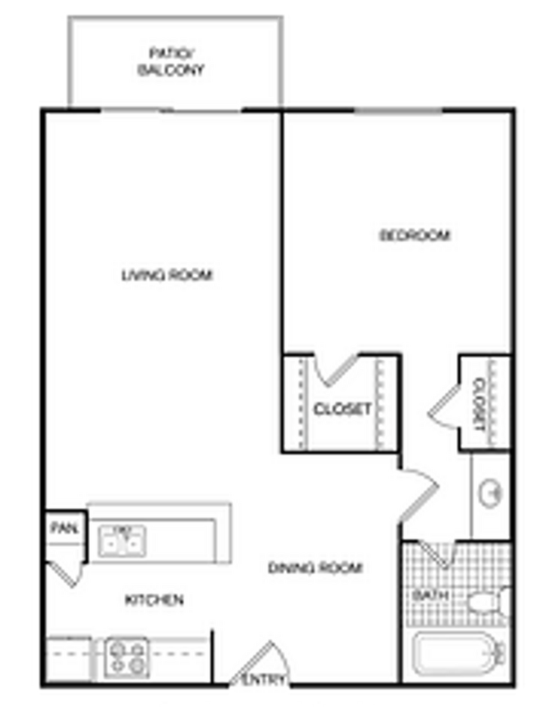 Modelo de apartamento: A5Desde $8651 Dormitorio, 1 Baño, 672 sq ftDisponible Ahora![]()
