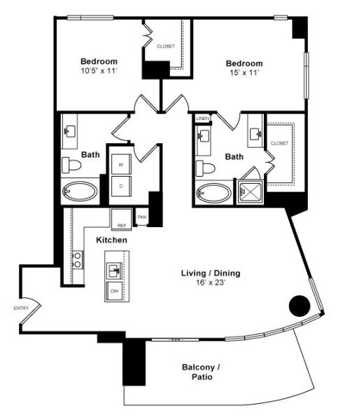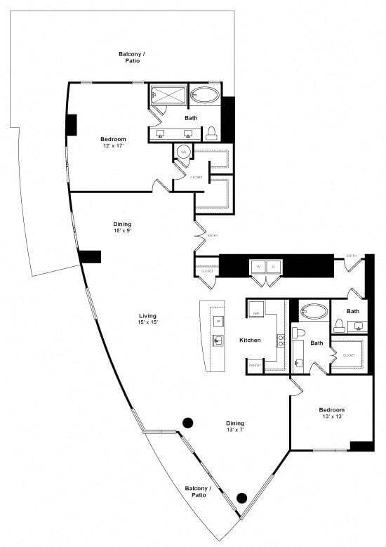 Modelo de apartamento: Spirit - Mid-RiseLlame para Precios1 Dormitorio, 1 Baño, 683 sq ftDisponible Ahora![]()