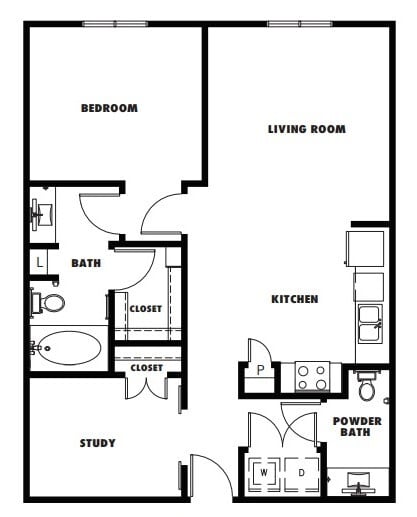 Estudio, 1 Baño, 588 pies²El más grandeEsta opción tiene las unidades más grandes para este modeloGalería del Modelo