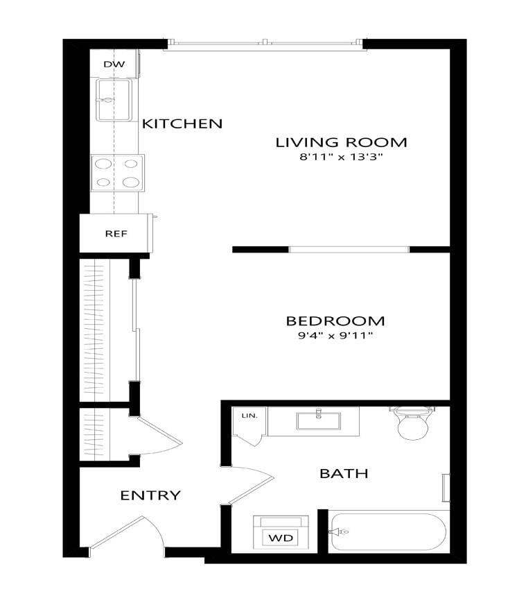 Estudio, 1 Baño, 518 pies²Galería del Modelo
