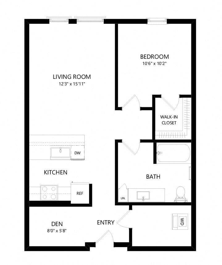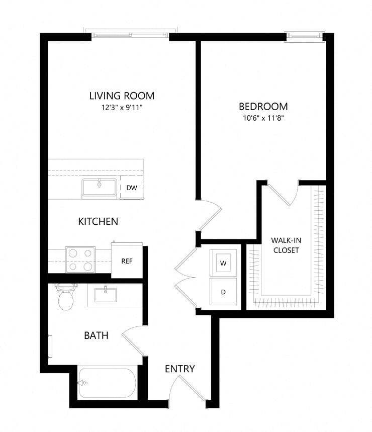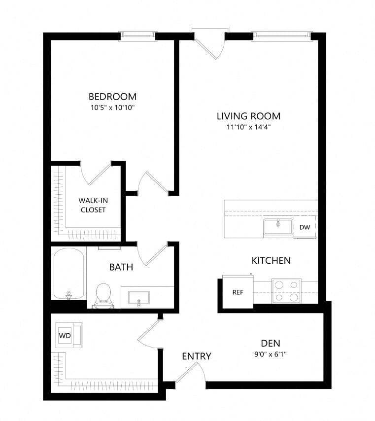 1 Dormitorio, 1 Baño, 633 pies²Galería del Modelo