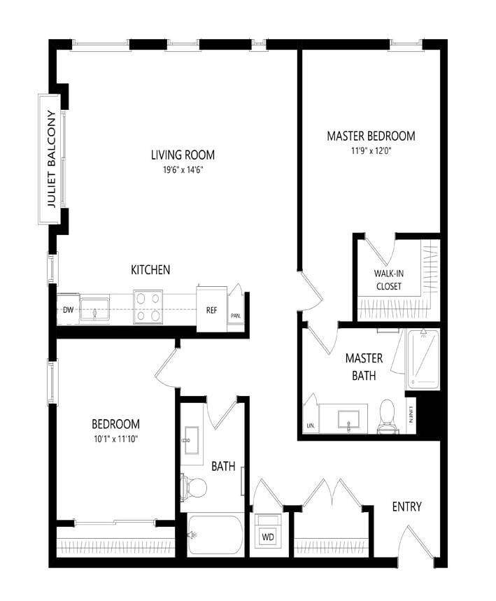 1 Dormitorio, 1 Baño, 700 pies²Galería del Modelo
