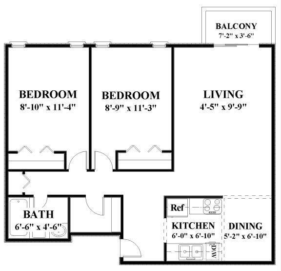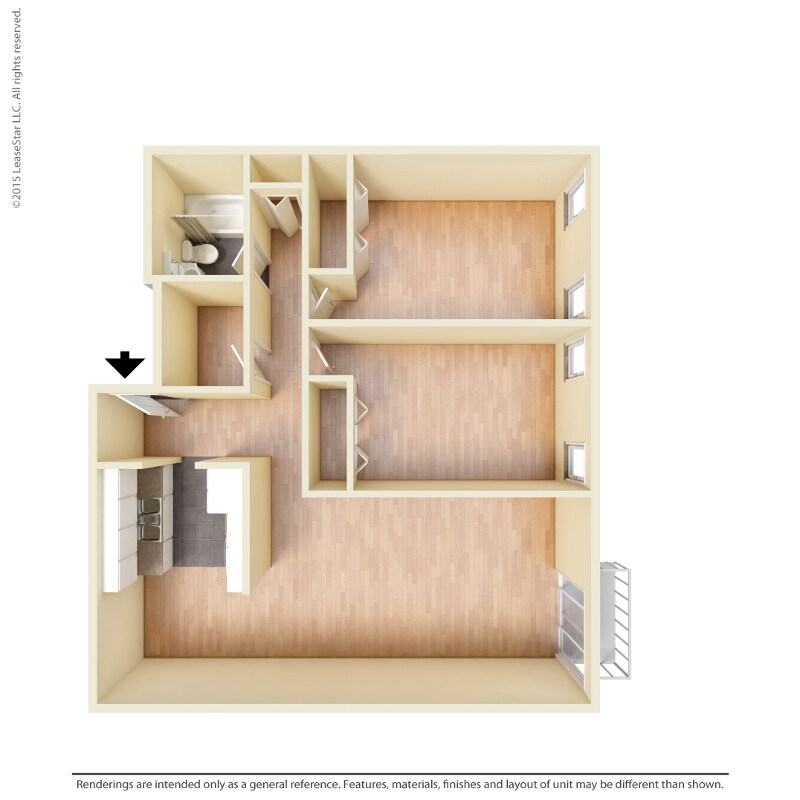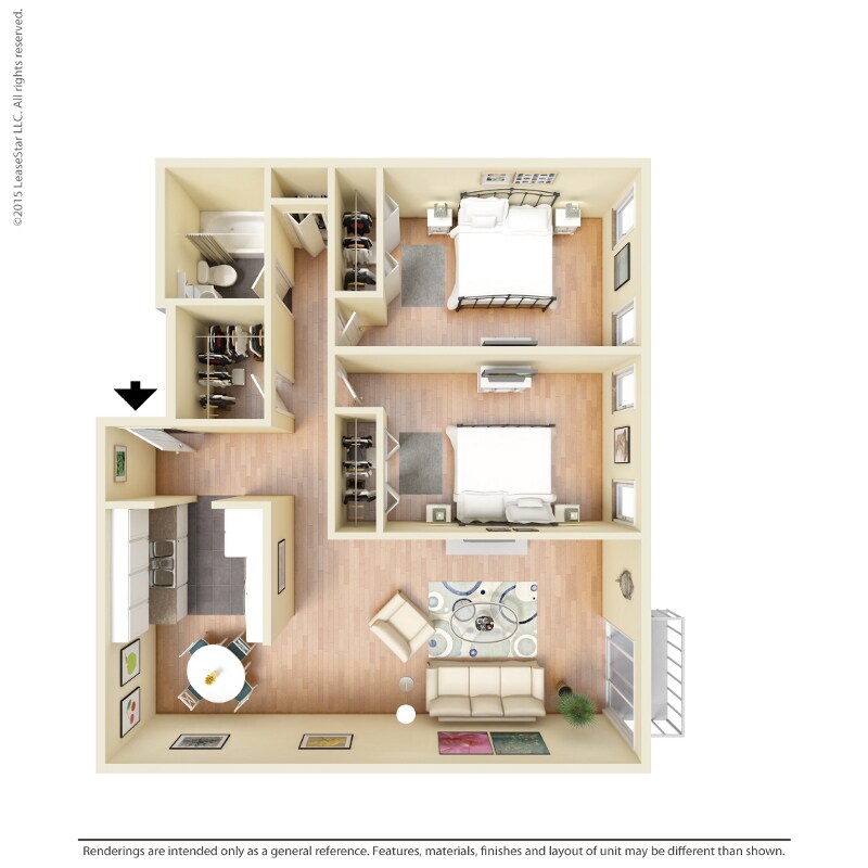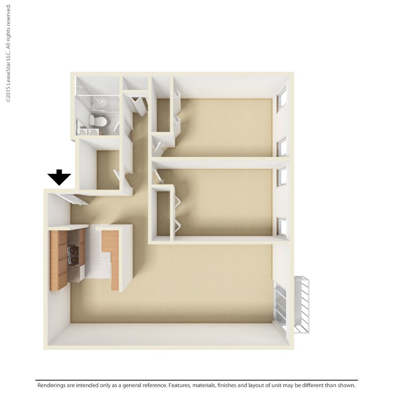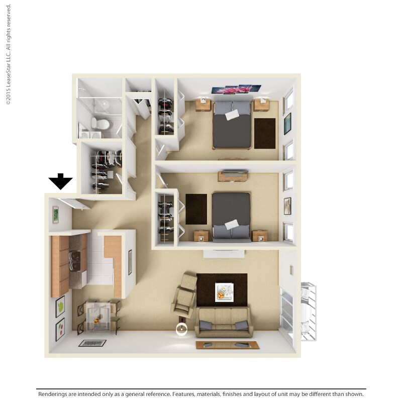 2 Dormitorios, 1 Baño, 920 pies²Precio Mensual TotalDisponible Dec 12Galería del Modelo