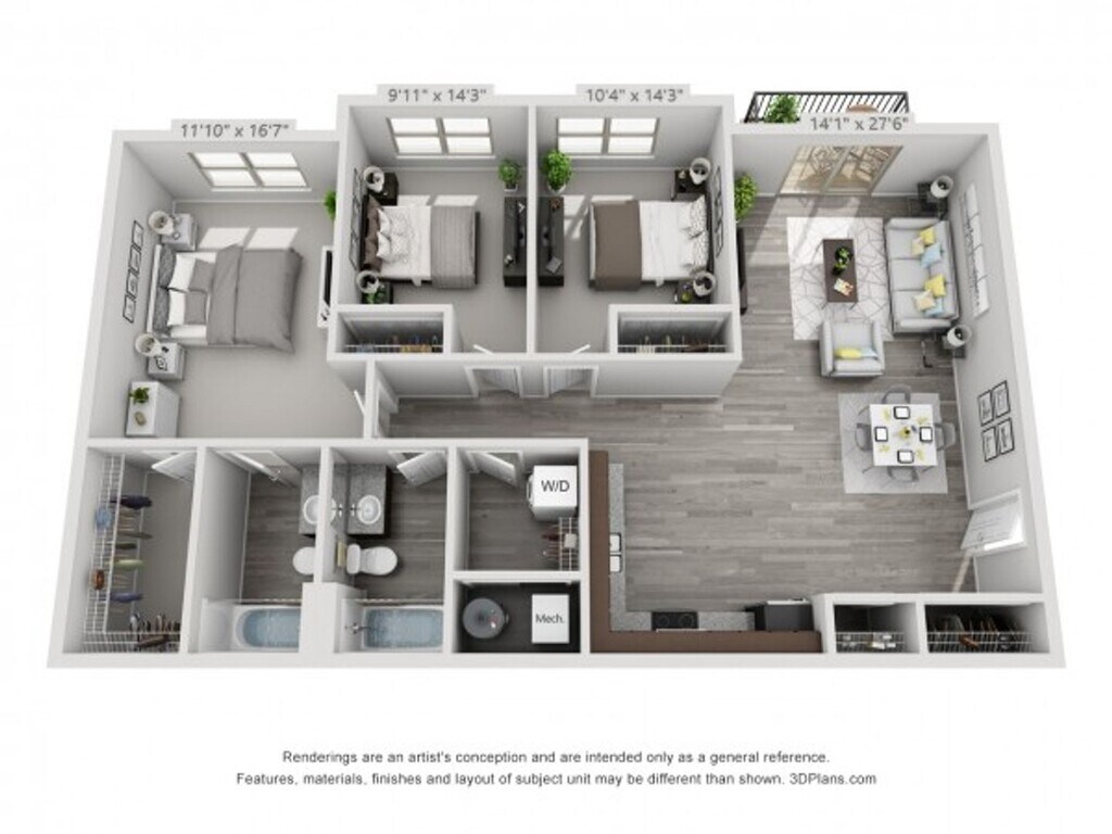 Modelo de apartamento: WV 3 BedDesde $1,4003 Dormitorios, 2 Baños, 1237 sq ftDisponible Ahora![]()