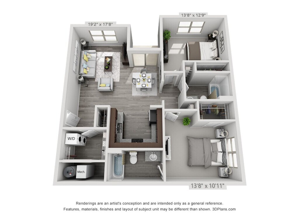 Modelo de apartamento: WV 2 Bed$1,2502 Dormitorios, 2 Baños, 1091 sq ftDisponible Ahora![]()