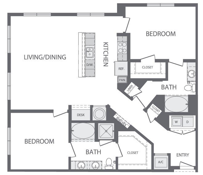 Modelo de apartamento: CDesde $2,6561 Dormitorio, 1 Baño, 761-785 sq ftDisponible Ahora![]()