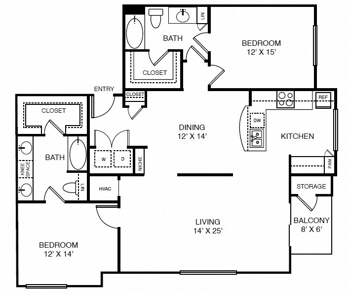 Modelo de apartamento: A31 Dormitorio, 1 Baño, 767 sq ftDisponible Ahora![]()