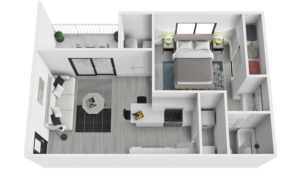 1 Dormitorio, 1 Baño, 851 pies²Disponible AhoraGalería del Modelo